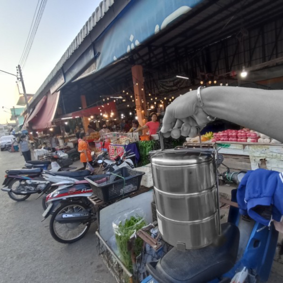 ตลาดเย็นขายอาหารปรุงสำเร็จ มีทั้งกับข้าวพื้นเมืองและกับข้าวทั่วไป